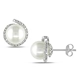 Here are some of the great features of 10k White Gold 1/10 CT TDW Diamond FW White Pearl Stud Earrings (G-H, I2-I3)