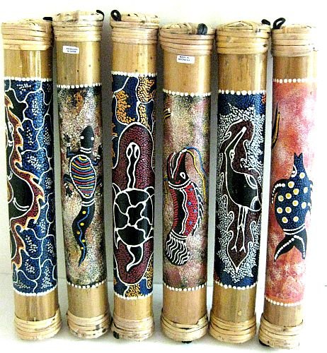 Rainstick, Rain Stick,, Recreate the sound of the gentle rain with this attractive percussion shaker insturment. Handmade by artisans from bamboo and enhanced with a traditional aboriginal painted design, this rainstick is a must have for any collection.
