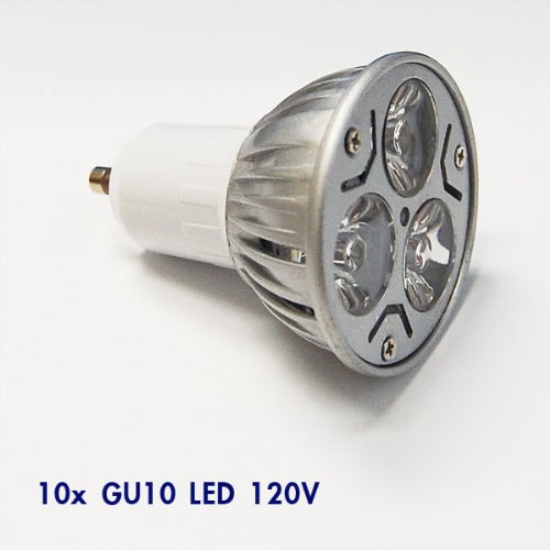 - (10) x GU10 LED Spot Light Bulb 120V 3W LED - Less Energy Consumption. 90% less than halogen bulb